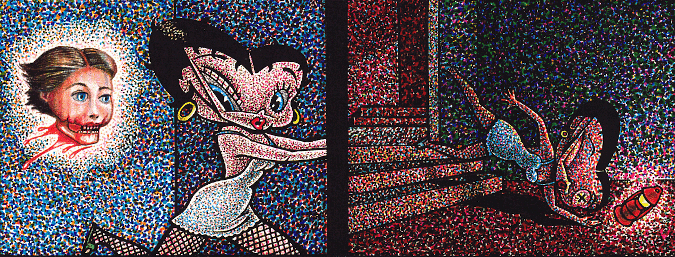As should be evident by my work, I was not only torn between being a fine arts artist and a comicbook artist, but my allegiance was also split between being a cartoonist and a comicbook artist. These different approaches originate from different impulses.