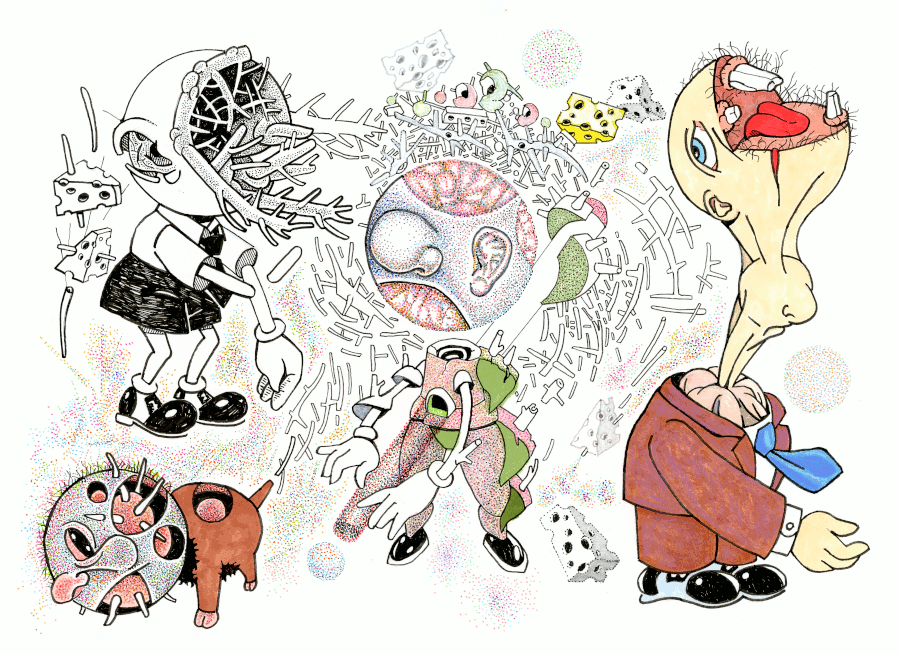 These drawings are on Strathmore’s 400 series paper, mostly. My use of this paper is accidental and stems from teaching a cartooning class for kids in the early 2000s. Some students never completed the course, so I was left with the remainder of their unused drawing tablets. The natural cream color of the paper is perserved in some examples.